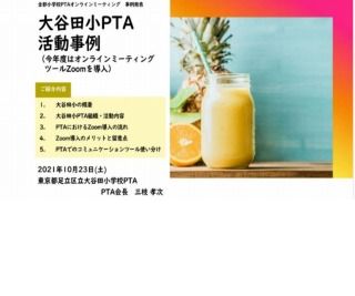 令和3年10月23日(土)、東京都小学校PTA協議会主催、全都小Pオンラインミーティングで、大谷田小PTAの活動やPTA定例委員会ZOOM開催等について、都小Pからの事前依頼を受けて、都内各校PTA会長及びPTA関係者向けにプレゼン実施しました。